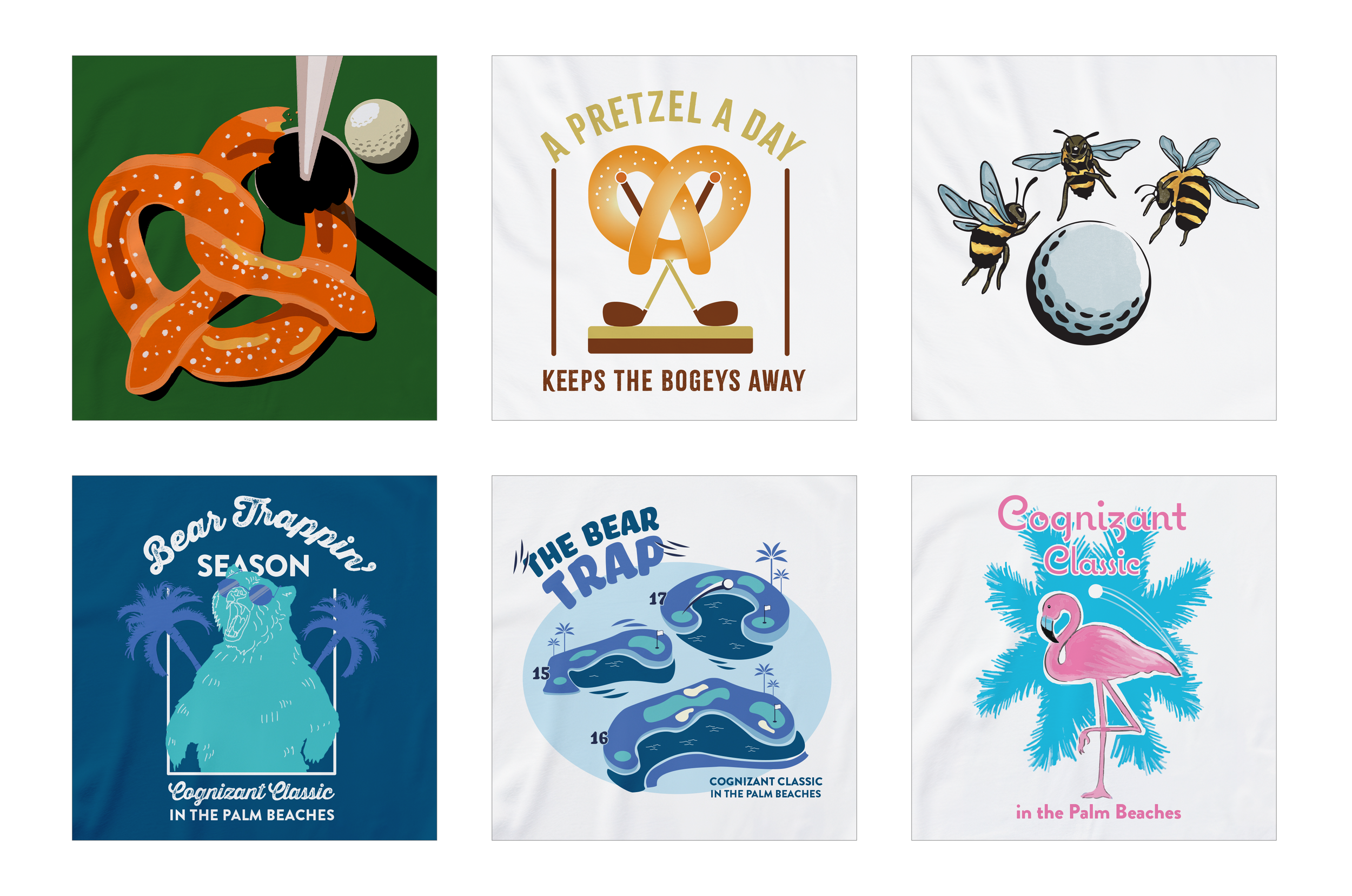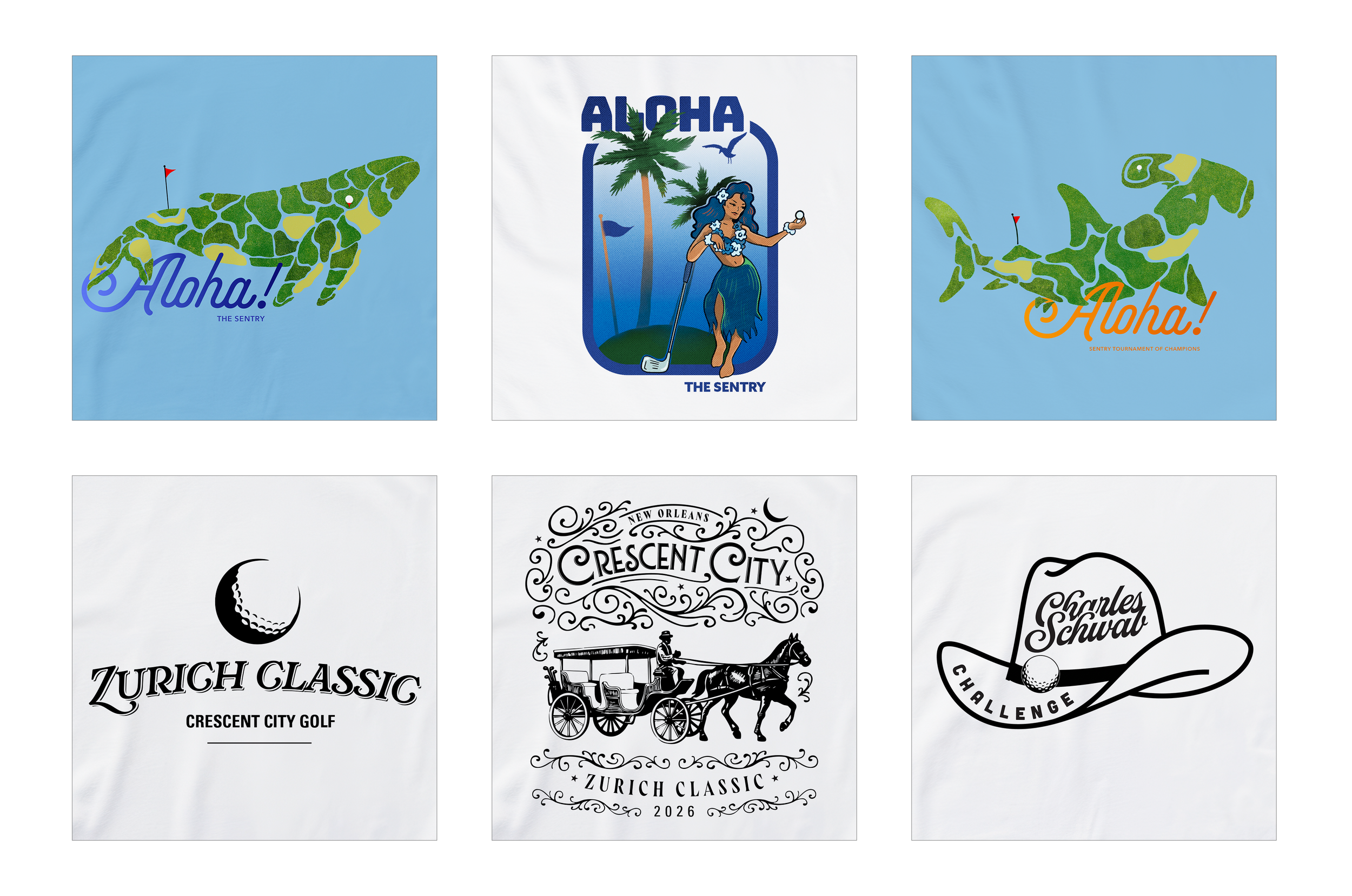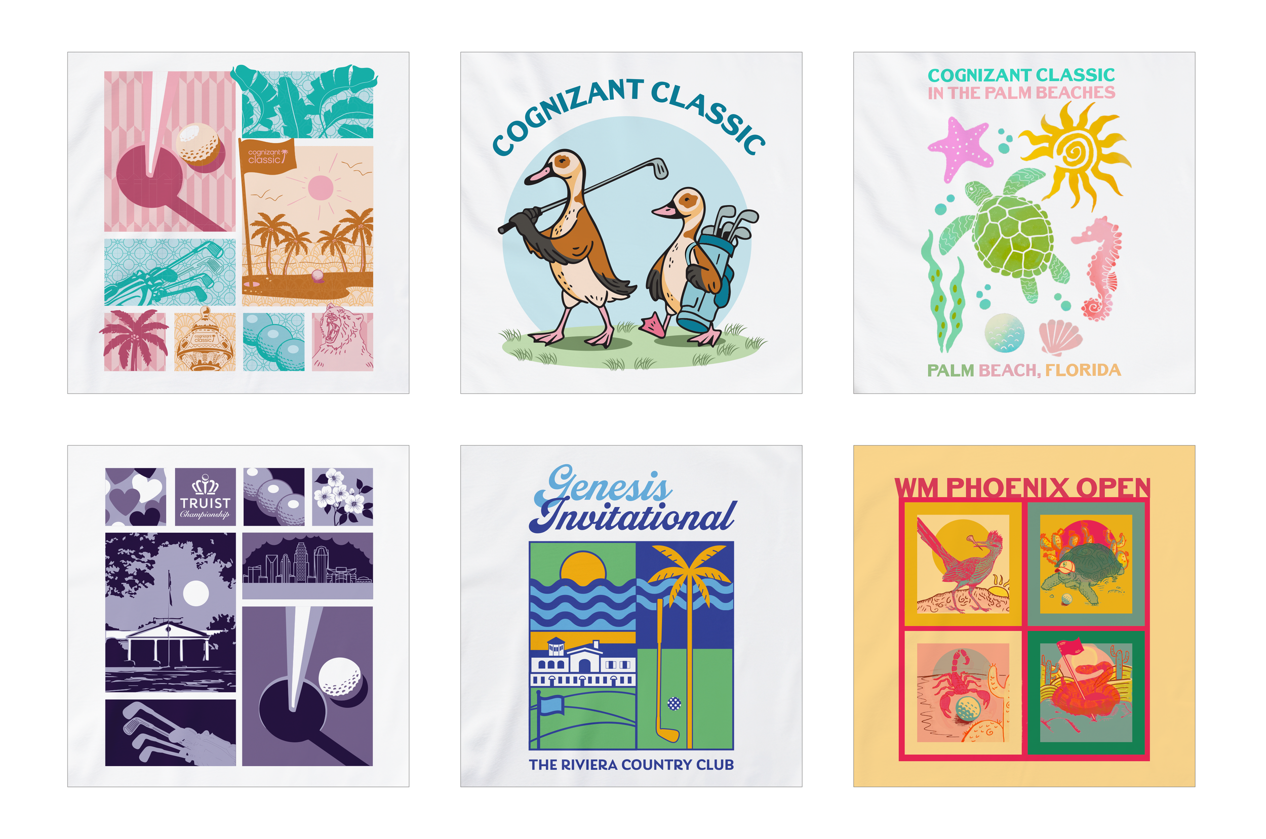 I created custom apparel and merchandise for multiple PGA TOUR tournaments. These designs merge tournament branding with elevated, local aesthetics. Each piece was crafted to capture the energy of the event while remaining wearable beyond tournament day.